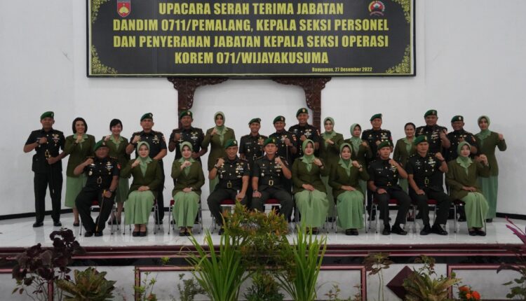 TerabasNews, Banyumas – Pergantian pejabat dalam suatu organisasi merupakan hal yang wajar, serta dapat terjadi setiap saat. Dengan tujuan agar pembinaan organisasi berlangsung secara berkesinambungan dan berkelanjutan serta sebagai bagian dari upaya penyegaran dan rotasi. Hal tersebut dikatakan Danrem 071/Wijayakusuma Kolonel Inf Yudha Airlangga, S.E., saat memimpin Serah Terima Jabatan (Sertijab) Dandim 0711/Pemalang dan Kasipersrem 071/Wijayakusuma serta Penyerahan Jabatan Kasiopsrem 071/Wijayakusuma, Selasa (27/12/2022) di Gedung Pertemuan A. Yani Makorem 071/Wijayakusuma, Sokaraja, Banyumas.