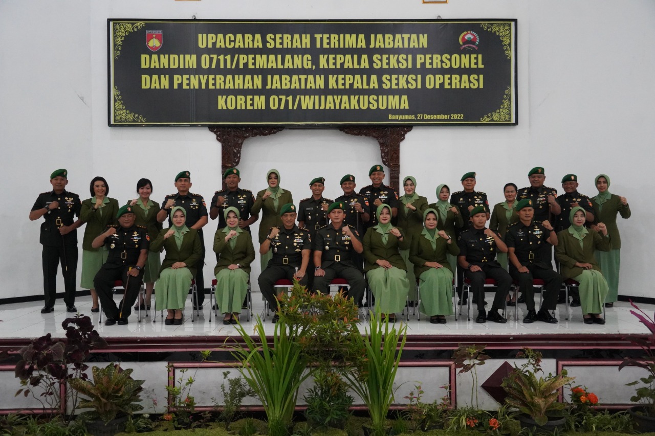 Serah Terima Jabatan Dandim 0711/Pemalang dari Letkol Inf Roihan Hidayatullah, S.Sos., kepada Letkol Inf Ade Afri Verdaniex dan Kasipersrem 071/Wijayakusuma dari Letkol Inf Harton, S.Pd., kepada Mayor Inf Dyan Niti Sukma serta Penyerahan Jabatan Kasiopsrem 071/Wijayakusuma kepada Mayor Inf Afdhal, S.I.P., dari Danrem 071/Wijayakusuma.