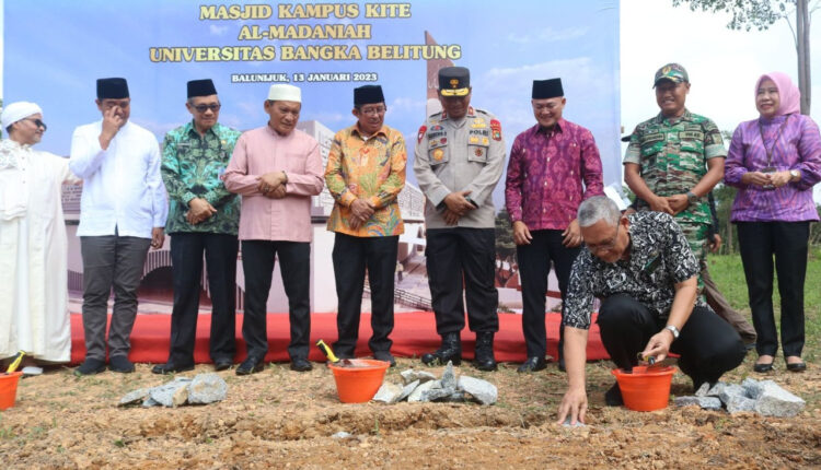 TerabasNews, Bangka – Masjid Kampus Kite Al-Madaniah, menjadi jargon masjid yang dibangun di Universitas Bangka Belitung (UBB), Kecamatan Merawang, Kabupaten Bangka. Peletakan batu pertama masjid ini dilaksanakan pada Jumat (13/01/2023) serta dihadiri Al Habib Ali Bin Hasan Bilfaqih sebagai pengisi tausiah.