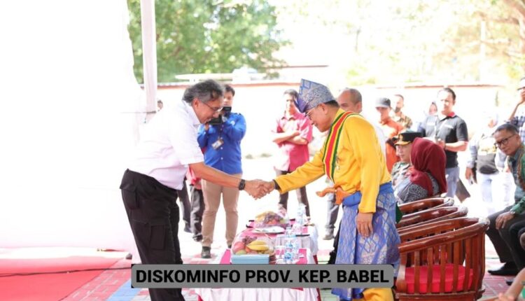 TerabasNews, PANGKALPINANG – Penjabat (Pj) Gubernur Kepulauan Bangka Belitung (Kep. Babel) Ridwan Djamaluddin bersama Kepala Staf Kepresidenan (KSP) Moeldoko menghadiri kegiatan Penabalan (pemberian) Gelar Adat kepada Kepala Staf Kepresidenan (KSP) Moeldoko dan Peresmian Fasilitas amenitas Pantai Pasir Padi, di Kawasan Wisata Pantai Pasir Padi, Jumat (13/1/2023) siang.