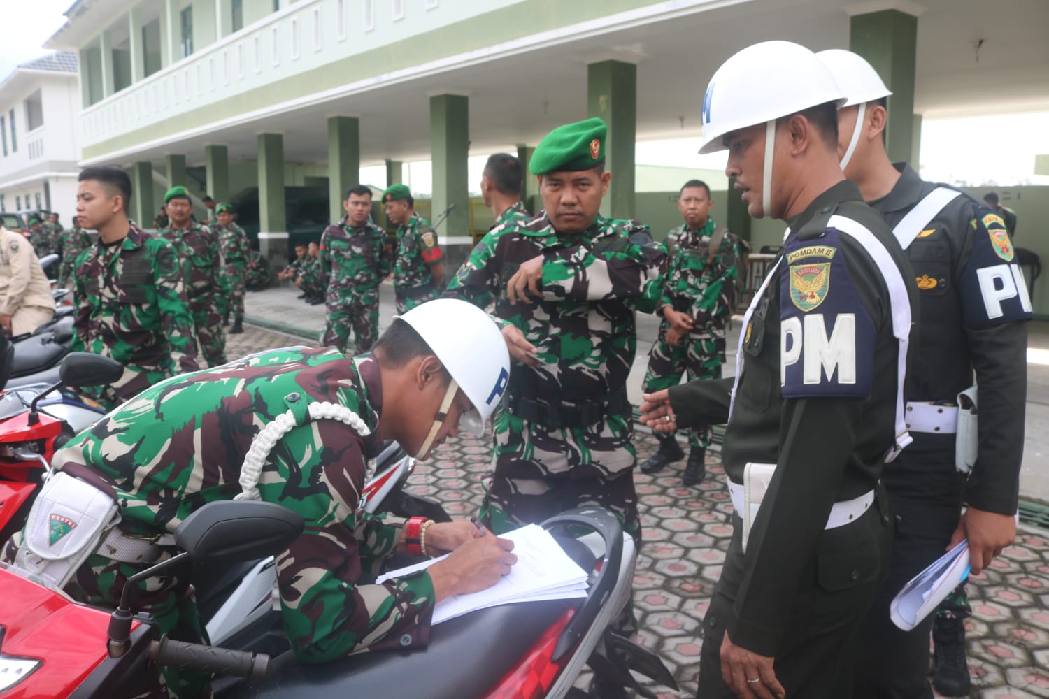 Adapun Pemeriksaan yang dilakukan meliputi pengecekan kelengkapan kendaraan, pengecekan surat kelengkapan kendaraan, pengecekan SIM, pengecekan KTA yang dipimpin oleh Pasi Lidpam Seksi Intelijen Korem Mayor Inf Subkhan.