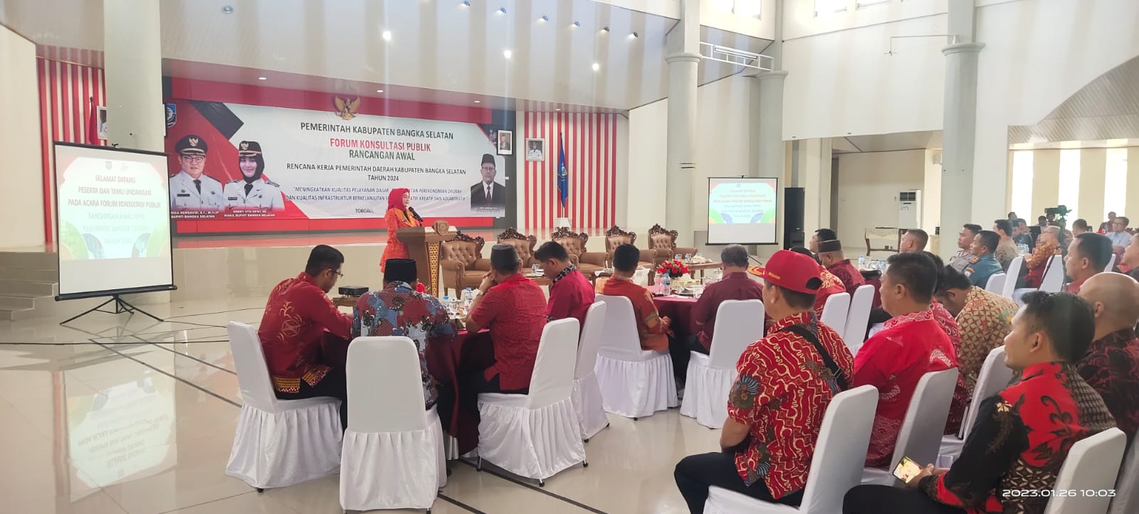TerabasNews, Toboali – Wakil Bupati Bangka Selatan secara membuka Forum Konsultasi Publik (FKP) yang diselenggarakan Pemerintah Kabupaten Bangka Selatan yang berlangsung di gedung serbaguna Bangka Selatan, Kamis 26/1.
