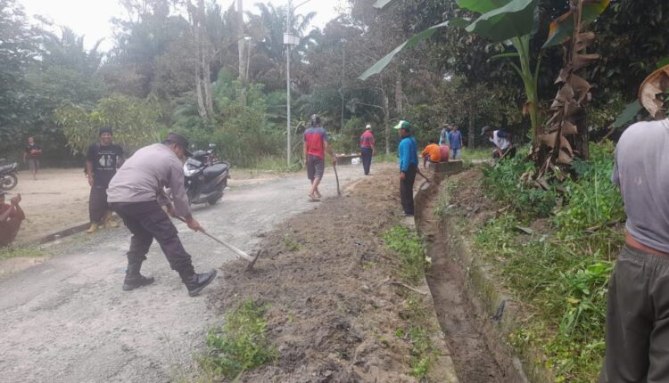Bhabinkamtibmas Gotong Royong Bersama Masyarakat Bersihkan Selokan