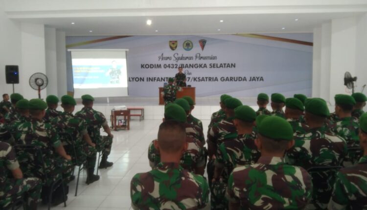 TerabasNews, Namang. Danrem 045/Garuda Jaya Brigjen TNI Ujang Darwis, MDA Selasa siang 07/02/2023 memberikan pengarahan kepada Prajurit Batalyon Infanteri 147/Kesatria Garuda Jaya di Aula Batalyon Desa Jelutung Kecamatan Namang Bangka Tengah.