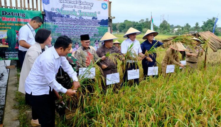 TerabasNews, Bangka Tengah, 8 Februari 2023 – Masyarakat Desa Namang, Kabupaten Bangka Tengah tersenyum lebar karena akhirnya lahannya bisa kembali produktif dan bisa menikmati hasil panen padi . Hasil panen ini merupakan jerih payah masyarakat sekitar dengan bantuan program Tanggung Jawab Sosial dan Lingkungan (TJSL) PT PLN (Persero) berupa pemberian bibit padi dan pemanfaatan pupuk dari sisa pembakaran batubara atau fly ash bottom ash (FABA).