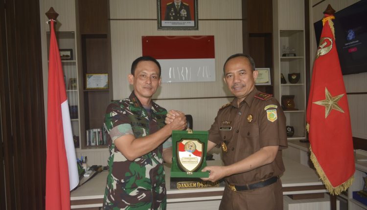 TerabasNews, Pangkalpinang – Danrem 045/Garuda Jaya Brigjen TNI Ujang Darwis, MDA menyambut kunjungan silaturahmi Kepala Kejaksan Tinggi (Kajati) Provinsi Kepulauan Bangka Belitung Asep Maryono, S.H di Makorem Selasa 28/02/2023.