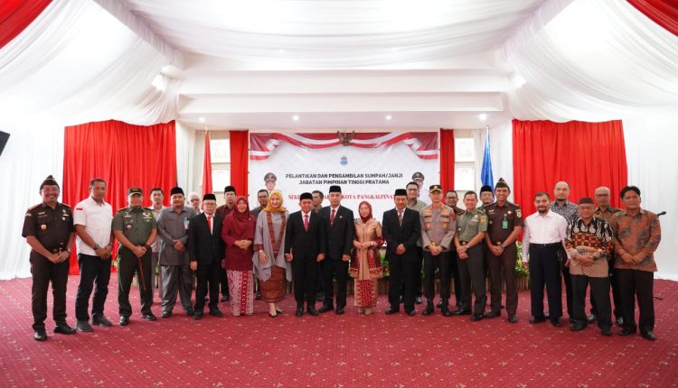 Selanjutnya berdasarkan rekomendasi dari Komisi Aparatur Sipil Negara Nomor 712/JP. 00.00/02/2023, tanggal 16 Februari 2023 perihal rekomendasi hasil seleksi terbuka jabatan Pratama Sekretaris Daerah Kota Pangkalpinang dan surat Gubernur Bangka Belitung Nomor 800.0112/BKP SDMD tanggal 27 Februari 2023 perihal persetujuan konsultasi pengisian jabatan Sekretaris Daerah Kota Pangkalpinang maka pada hari ini terhitung 1 Maret 2023 Sekretaris Daerah Kota Pangkalpinang dilantik dan diambil sumpahnya.