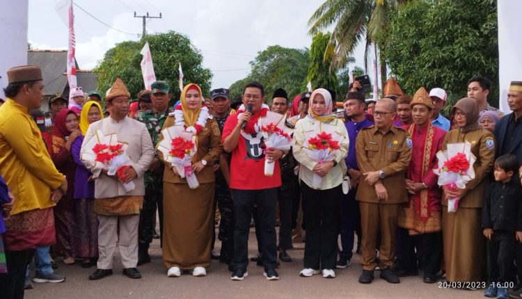 Kedatangan Bupati Bangka Selatan Riza Herdavid dan Wakil Bupati Debby Vita Dewi disambut antusias warga Desa Pasir Putih Kecamatan Tukak Sadai.