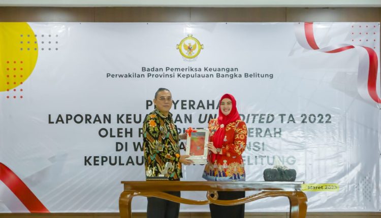 LKPD tahun anggaran 2022 Pemkab Bangka Selatan diserahkan langsung oleh Wakil Bupati Bangka Selatan, Debby Vita Dewi kepada Kepala BPK RI Provinsi Kepulauan Bangka Belitung, Sudarminto Eko Putra.