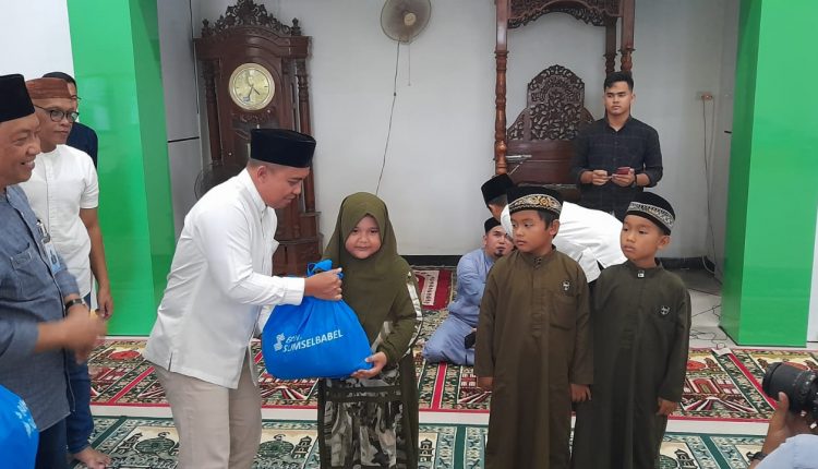 Sebanyak 50 pake sembako dan 80 takjil dan nasi kota diberikan secara simbolis kepada 50 anak oleh Wali Kota Pangkalpinang Maulan Aklil (Molen), Direktur Kepatuhan Bank Sumsel Babel Mustaqim dan Ketua Mesjid Ust suherdinal.