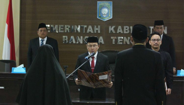 TerabasNews, Koba – Bupati Bangka Tengah, Algafry Rahman melantik dan mengambil sumpah Pegawai Negeri Sipil (PNS) dalam Jabatan Pimpinan Tinggi Pratama dan Administrator di lingkungan Pemerintah Kabupaten Bangka Tengah Tahun 2023, diselenggarakan di Ruang VIP Pemerintah Kabupaten Bangka Tengah, Rabu (05/04/2023).