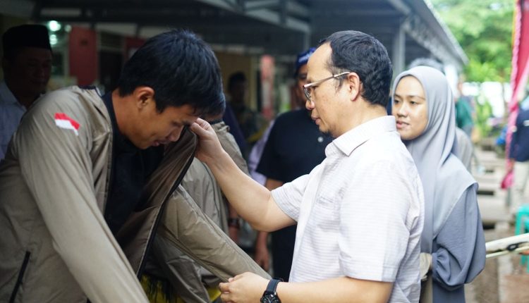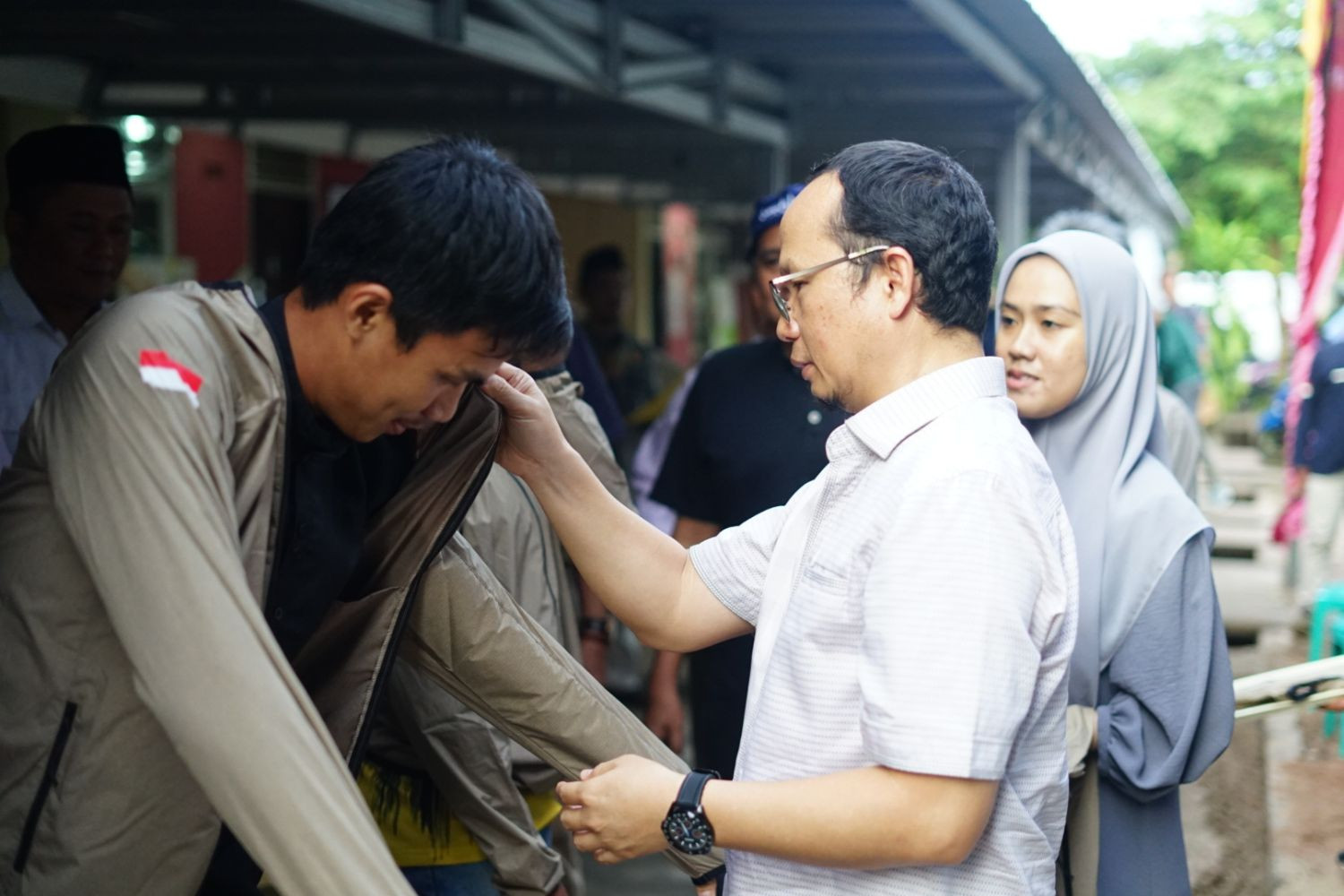Algafry Rahman memakaikan jaket secara langsung kepada perwakilan atlet dan pelatih Pelatda sebagai simbolis launching dan disaksikan langsung oleh para jajaran Forkopimda, Kepala Dinas Kesehatan, perwakilan Disbudparpora, Ketua Baznas, Ketua KONI Bangka Tengah serta para atlet dan pelatih Pelatda.