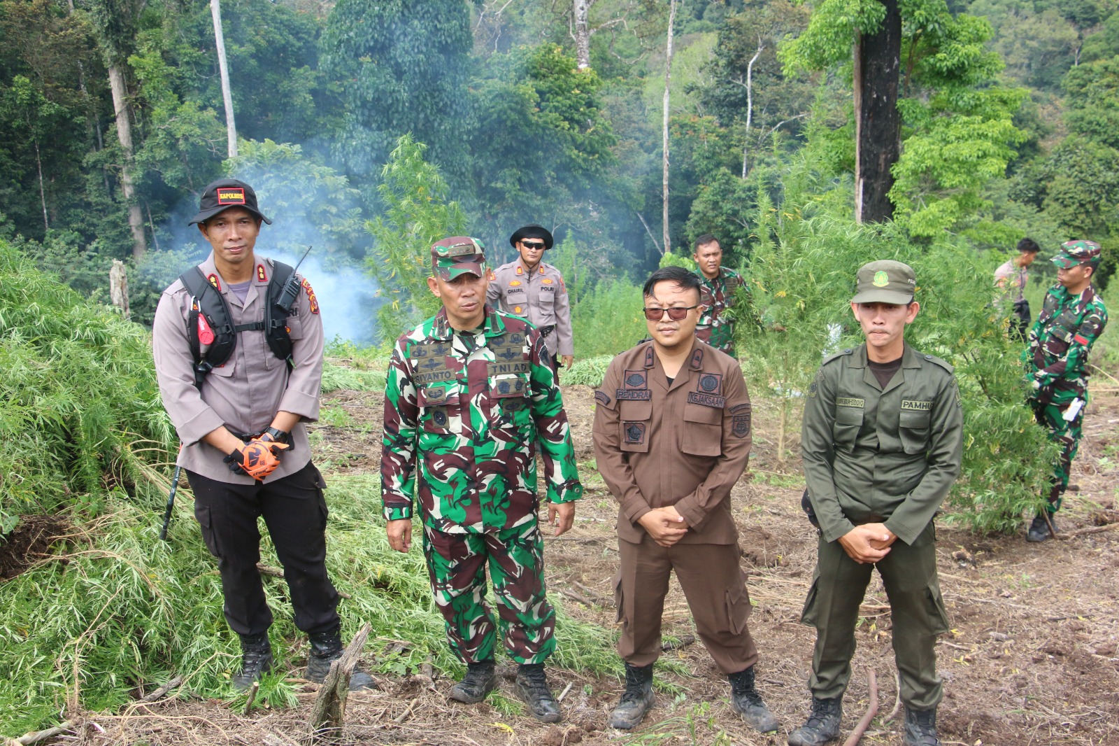 Aparat Gabungan Dipimpin Danrem 012/TU Musnahkan Ladang Ganja