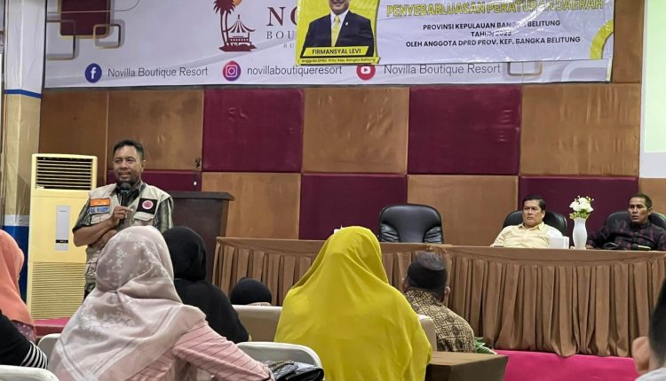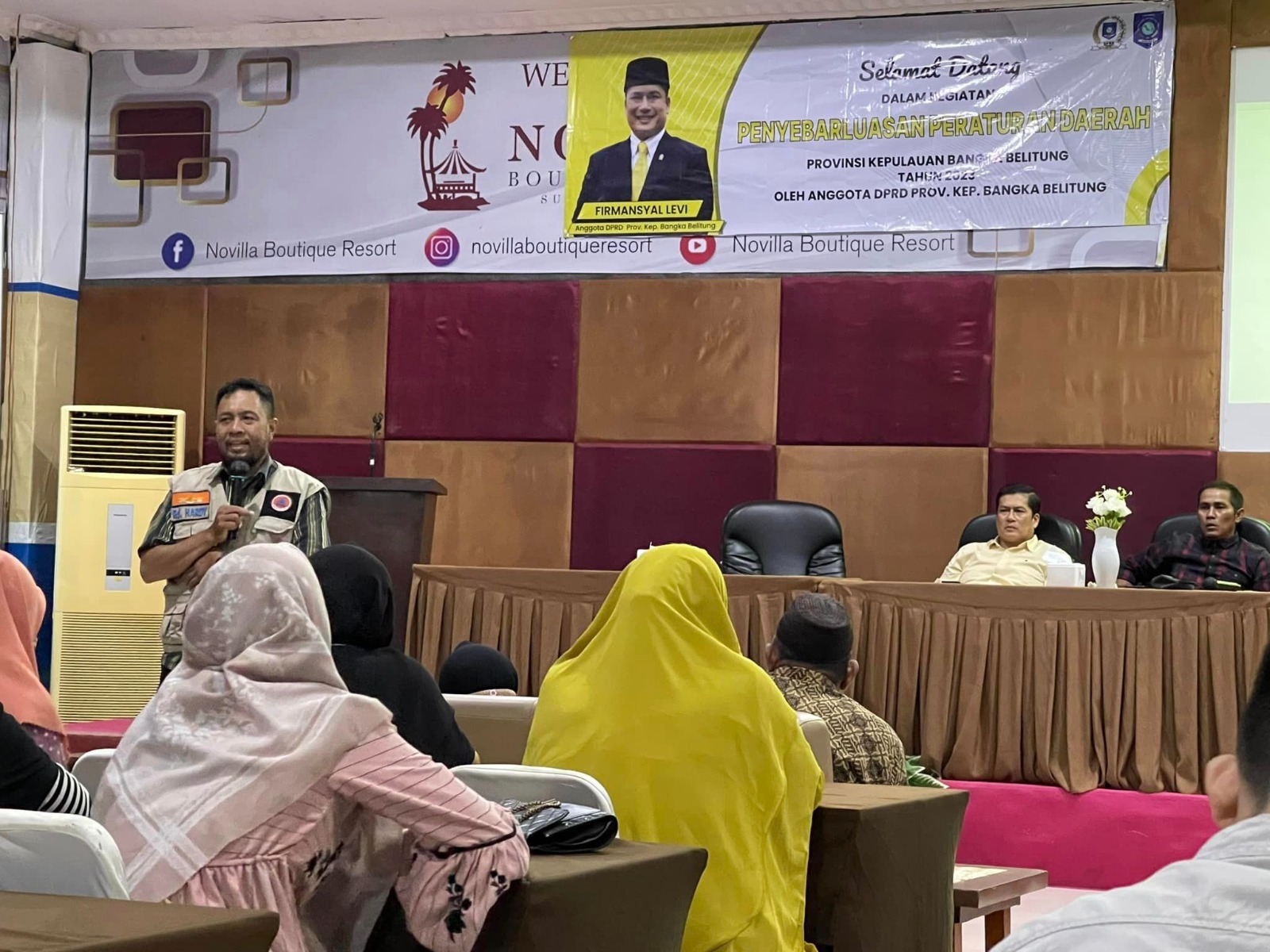 TerabasNews, SUNGAILIAT – Anggota DPRD Prov. Kepulauan Bangka Belitung Firmansyah Levi SH kembali melakukan kegiatan Penyebarluasan Perda di Kabupaten Bangka kepada warga Kampung Pasir bertempat di Hotel Novilla Kab. Bangka, Minggu16/04/2023.
