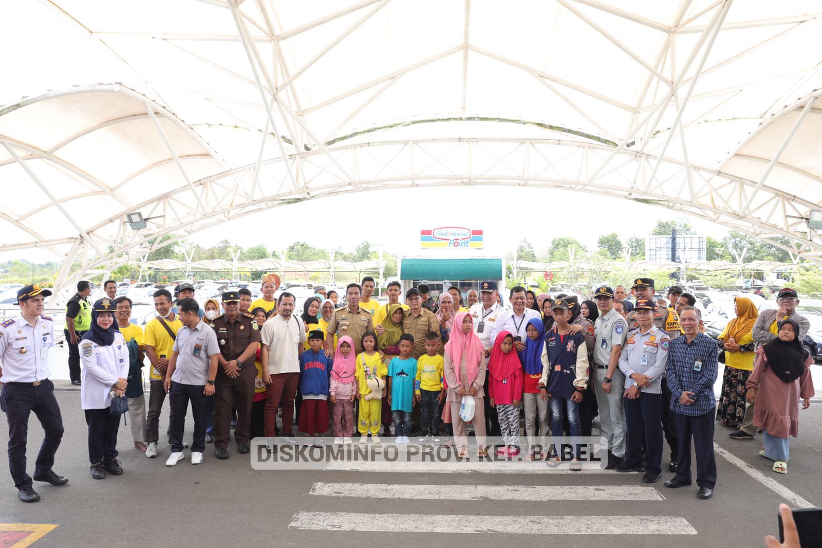 Bersama Bupati Bangka Tengah Algafry, dan didampingi Kepala Dinas Perhubungan (Kadishub) Bangka Tengah Fani, Kepala Balai Denny, serta GM Angkasa Pura, Pj Gubernur Suganda kibarkan bendera ‘start’ yang menandakan Pelepasan Bus Angkutan Mudik Gratis Kabupaten Bangka Tengah 2023.