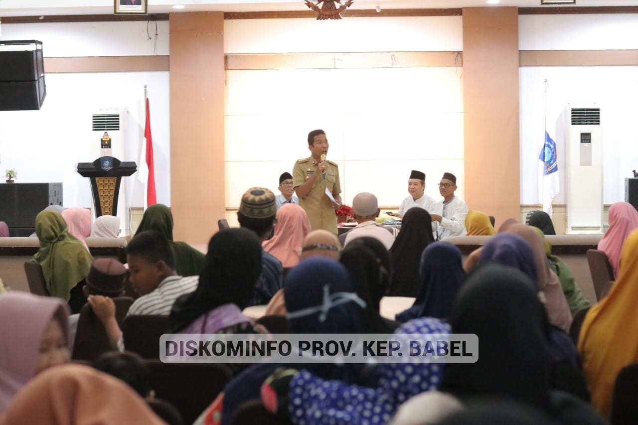 Kegiatan yang merupakan kolaborasi antara Badan Amil Zakat Nasional (Baznas) dan Pemerintah Provinsi (Pemprov) Kep. Babel tersebut diisi dengan pemberian santunan berupa uang tunai secara simbolis kepada para mustahik.