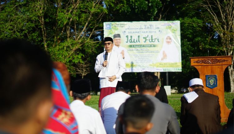 Algafry Rahman Sholat Ied Bersama Masyarakat di Halaman Kantor Bupati Bangka Tengah