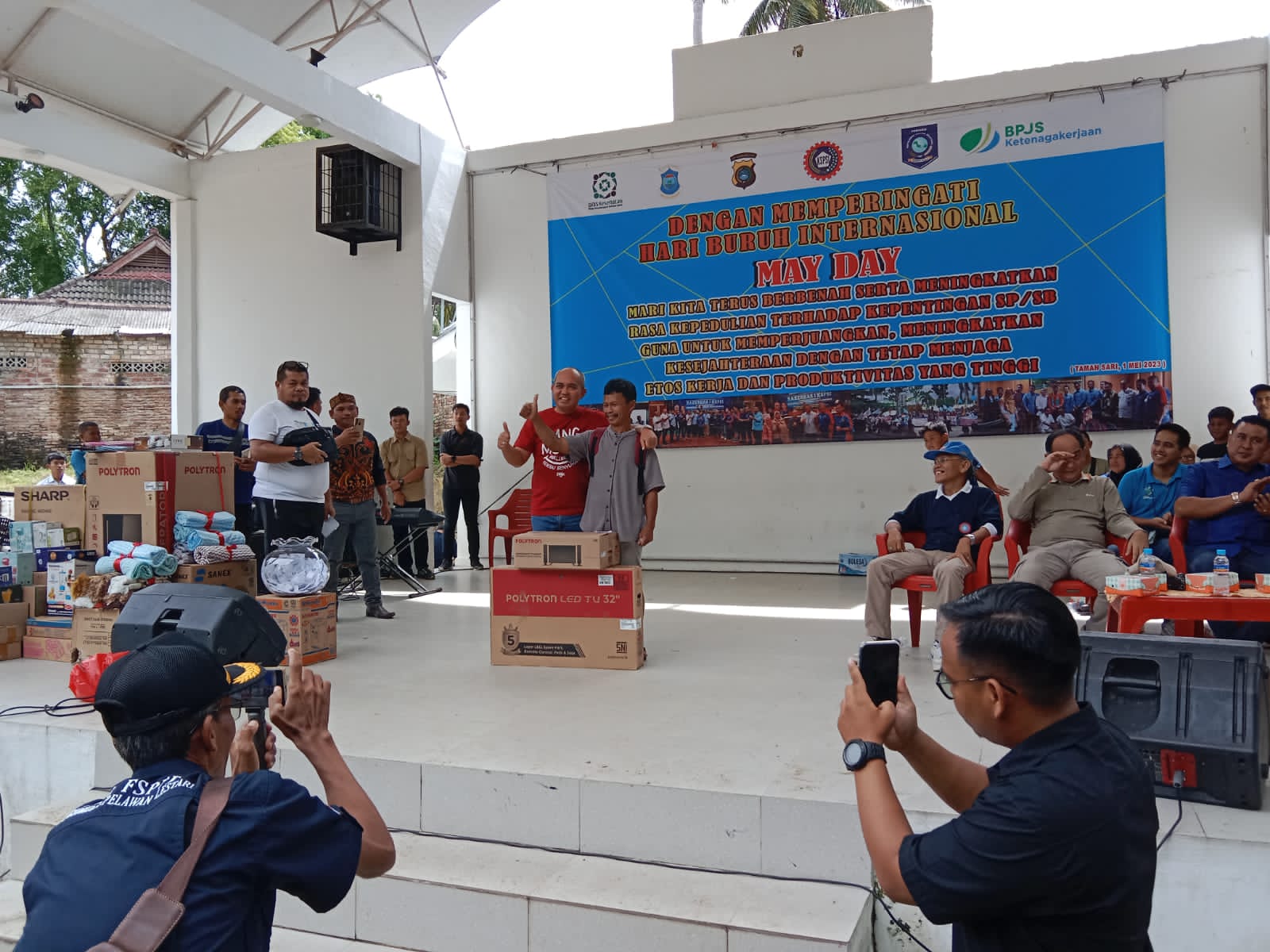 “Didepan saya ini adalah saudara saya, seperadik ku, di luar sana saya sudah cukup, materi cukup, tapi saya ingin Bangka Belitung ini bangkit. Ayo buang sifat iri dengki, mari kita bersatu untuk kesejahteraan masyarakat Bangka Belitung. Saya bukan siapa-siapa, mak bak ku bukan siapa-siapa, jauh dari raja-raja, jadi saya merasakan apa yang bapak ibu rasakan”, ungkap Molen disusul dengan tepuk tangan riuh buruh.