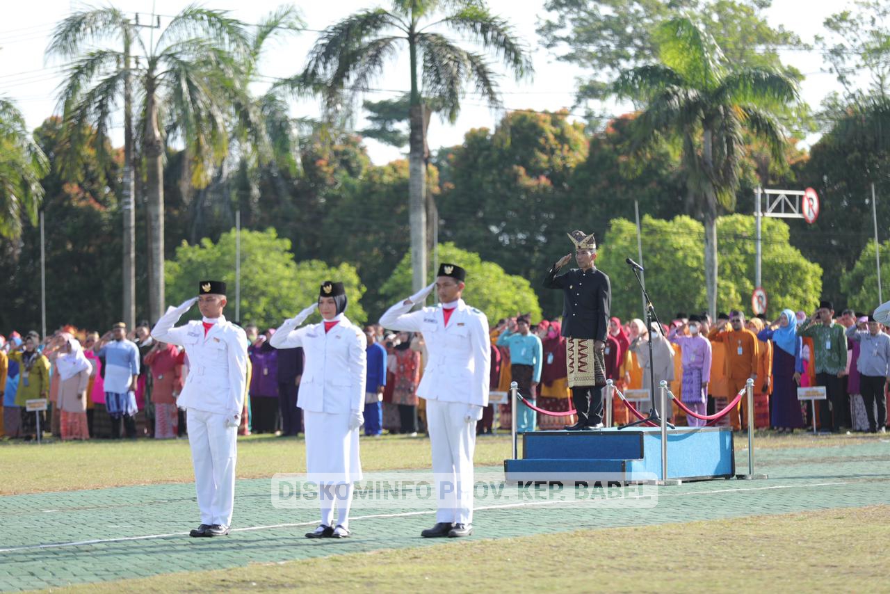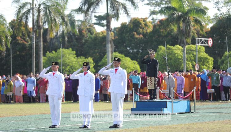 TerabasNews, PANGKALPINANG – Penjabat (Pj) Gubernur Kepulauan Bangka Belitung (Kep. Babel) Suganda Pandapotan Pasaribu, selaku Pembina Upacara memimpin Upacara Peringatan Hari Pendidikan Nasional (Hardiknas) Tahun 2023 di Lapangan Upacara Kantor Gubernur, Senin (1/5/2023).