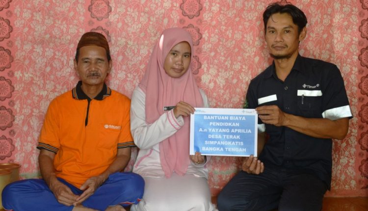 TerabasNews, Bangka Tengah – Masih dalam momentum Hari Pendidikan Nasional, PT Timah Tbk menyalurkan bantuan pendidikan bagi Rispa Sabili dan Yayang Aprilia warga Desa Terak, Kecamatan Simpang Katis, Kabupaten Bangka Tengah.