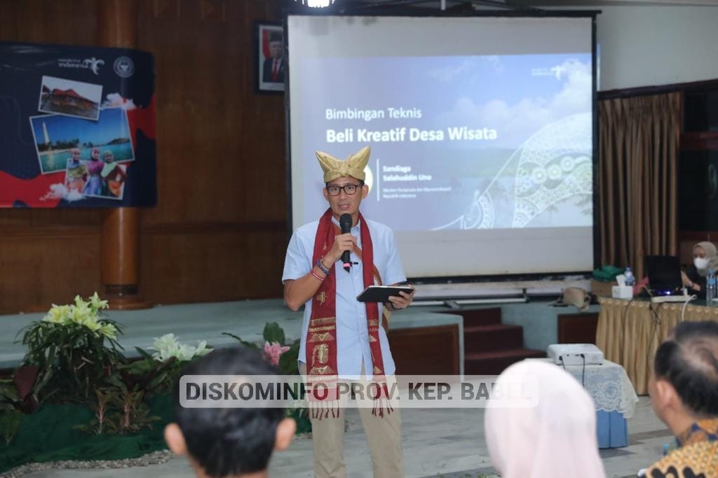 Hal ini disampaikan Dwi Marhen Yono dalam sambutannya saat ramah tamah bersama Menteri Pariwisata dan Ekonomi Kreatif Republik Indonesia (Menparekraf RI) Sandiaga Salahuddin Uno, di Auditorium Depati Amir, Tanjung Pesona Beach Resort, Sungailiat, Kabupaten Bangka, Jum’at (12/05/23) malam.