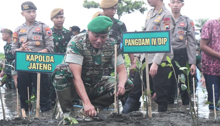 Pangdam IV/Diponegoro Bersama Kapolda Jateng dan Sekda Jateng Tanam Bibit Mangrove Di Pesisir Pantai Tirang