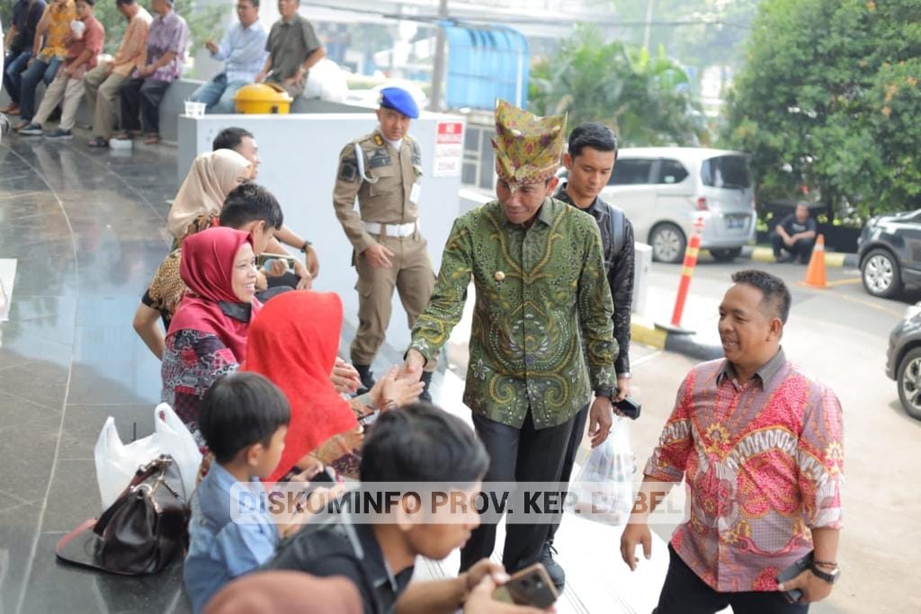TerabasNews, JAKARTA – Penjabat (Pj) Gubernur Kepulauan Bangka Belitung (Kep. Babel) Suganda Pandapotan Pasaribu bersama Pj. Ketua Dekranasda Kep. Babel Maya Suganda Pasaribu menyalami tamu yang hadir usai mengunjungi seluruh stan UMKM yang digelar pada acara Halal Bihalal & Silaturahmi Masyarakat Perantauan Provinsi Kep. Babel se-Jabodetabek di Smesco Exhibition Hall, Minggu (21/5/2023).