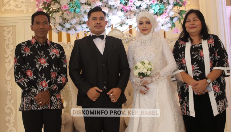 TerabasNews, PANGKALPINANG – Penjabat (Pj.) Gubernur Kepulauan Bangka Belitung (Kep. Babel), Suganda Pandapotan Pasaribu beserta istri Maya Suganda Pasaribu, menghadiri undangan pernikahan Rio dan Tiara di Gedung Golden Palace Jl. Delima Siam III Girimaya Pangkalpinang pada Minggu (28/5/2023).