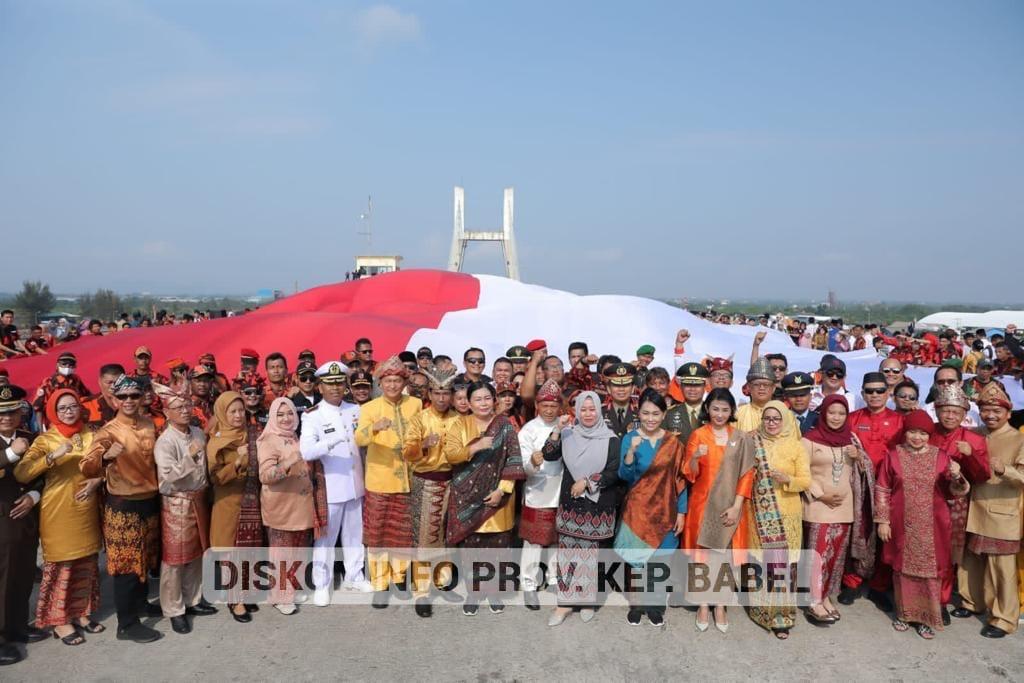 Bendera merah putih raksasa dibentangkan oleh personil TNI dan Organisasi Masyarakat Pemuda Pancasila seusai upacara Hari Lahir Pancasila. Bendera sepanjang 78 meter tersebut berhasil menyelimuti jembatan emas. Penjabat (Pj) Gubernur Kep. Babel Suganda Pandapotan Pasaribu bersama unsur Forkopimda terpukau saat melihat bendera tersebut terbentang luas.