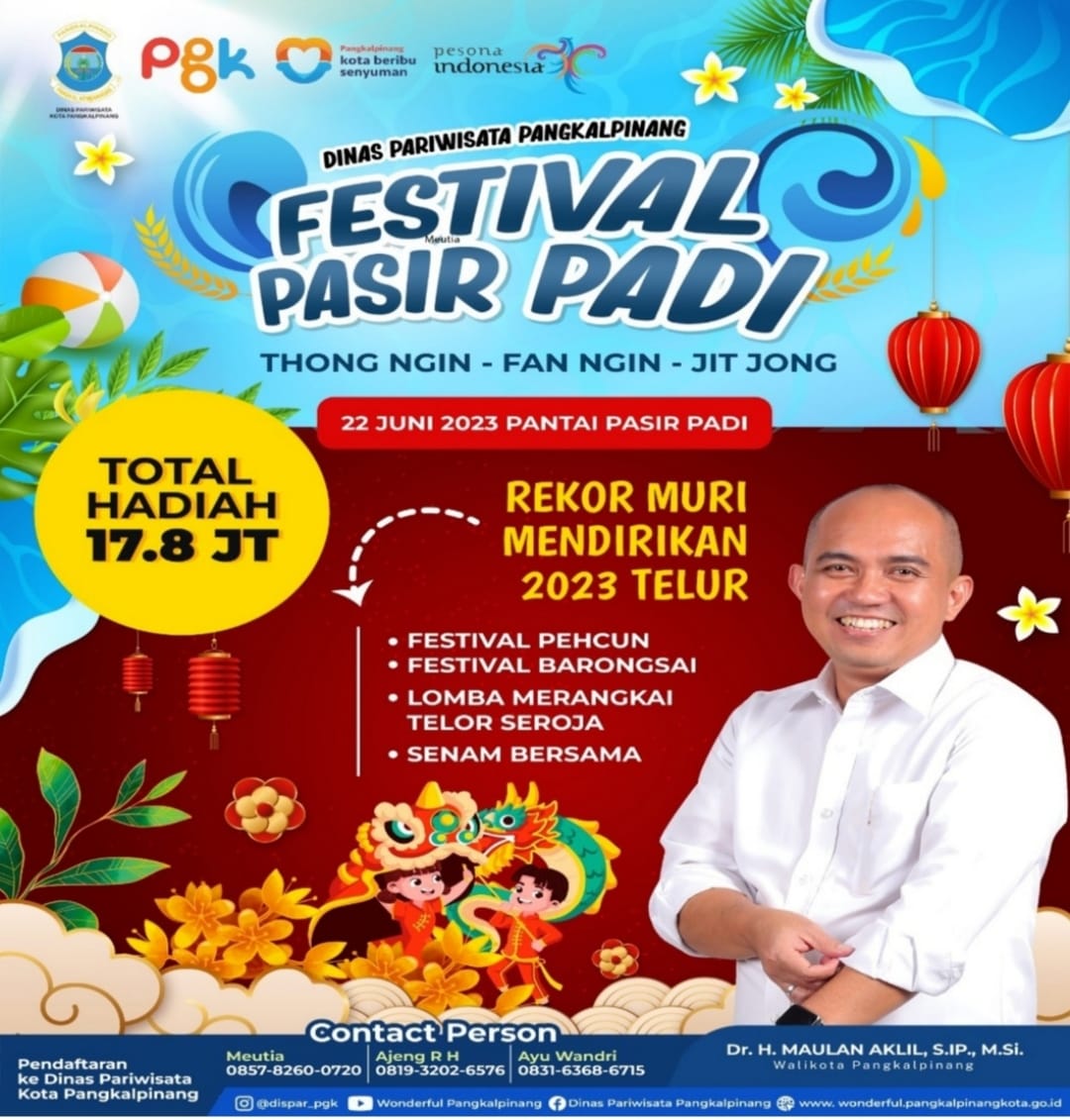“Untuk Informasi mengenai kegiatan ini dapat dipantau melalui Instagram Dinas Pariwisata @dispar_pgk atau Facebook Dinas Pariwisata Kota. Pendaftaran ditutup hari Rabu tanggal 21 Juni 2023,” ucapnya.