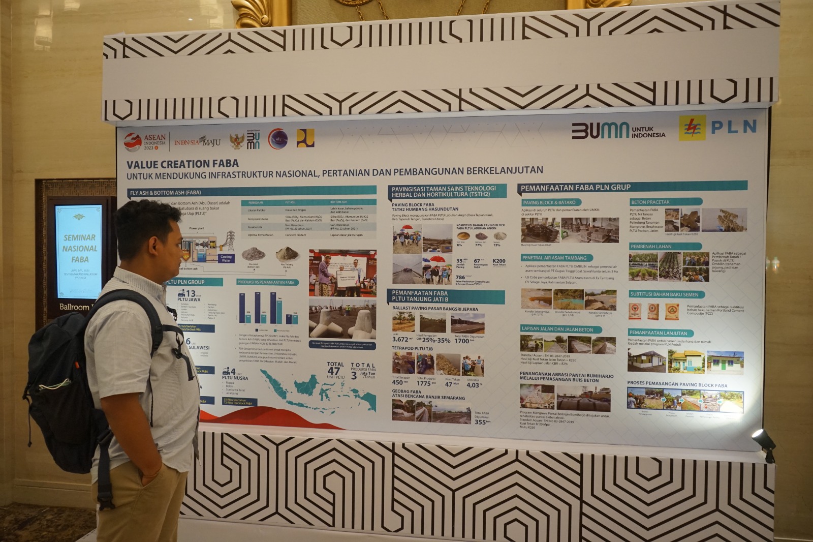 Salah seorang peserta Seminar Nasional bertajuk _'Value Creation of_ FABA antusias melihat informasi upaya PLN dalam mendukung pemanfaatan FABA di Exhibition FABA yang digelar di Semarang.