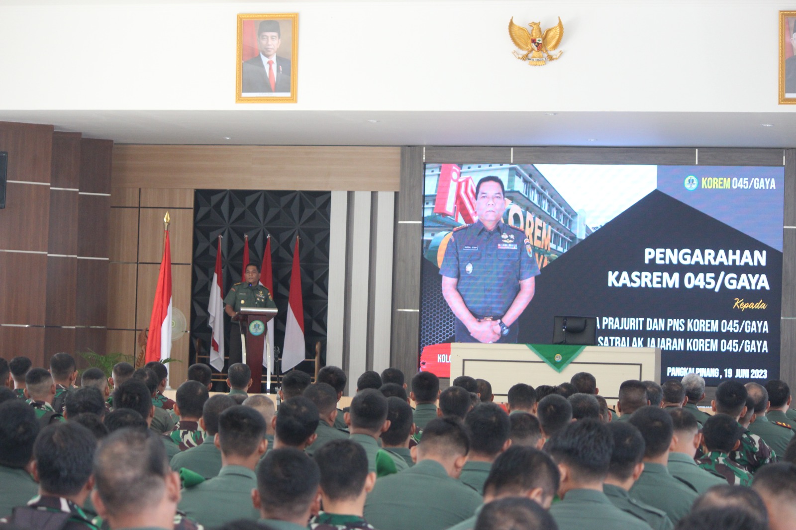 Dalam pengarahan tersebut Kasrem mengharapakan seluruh prajurit dan PNS Korem 045/ Garuda Jaya dan jajarannya dimanapun bertugas dan berada agar Selalu Disiplin, loyal dan tepati Waktu.