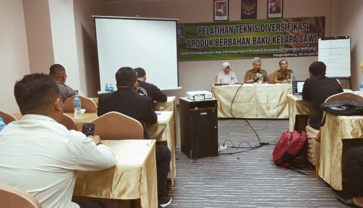 TerabasNews, Pangkalpinang- Dinas Perindustrian dan Perdagangan (Disperindag) Provinsi Kepulauan Bangka Belitung (Babel) memberikan pelatihan Teknis Diversifikasi Produk Berbahan Baku Kelapa Sawit ke para pelaku usaha Sawit Se-Provinsi Kepulauan Bangka Belitung (Babel),