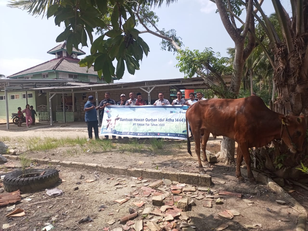 Senada, Ketua Masjid sekaligus panitia kurban masjid Al Baru Rohim, Hasan menyampaikan selain memberikan bantuan hewan kurban, PT Timah Tbk juga membantu peralatan ibadah.