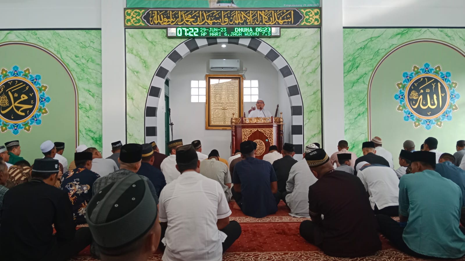 Bertindak sebagai Imam dan Khotib Sholat Idul Adha, Ustadz Zaifah Pimpinan Pondok Pesantren Riyadul Muhibbin desa Namang , Dengan tema “Jadikan Idul Adha 1444 H/2023 M Sebagai Sarana Peningkatan Ketakwaan Dan Kepedulian”.