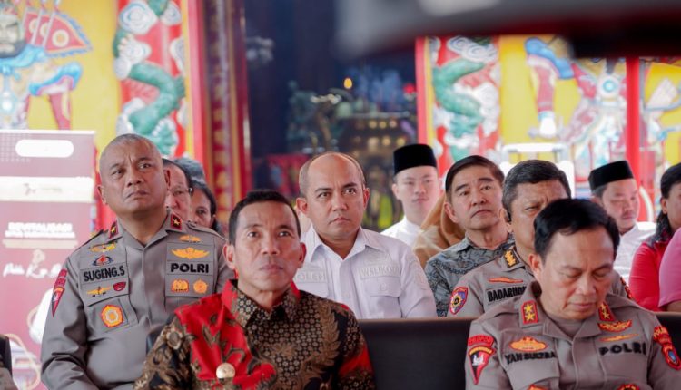 TerabasNews, PANGKALPINANG – Wali Kota Pangkalpinang, Dr. H. Maulan Aklil hadiri doa bersama lintas agama, penganugerahan pemenang lomba berkaitan bidang keagamaan dan revitalisasi situs budaya/agama dalam rangka peringatan hari Bhayangkara ke-77 tahun 2023 di Klenteng Kwan Tie Miau Kota Pangkalpinang, Jumat (30/6/2023).