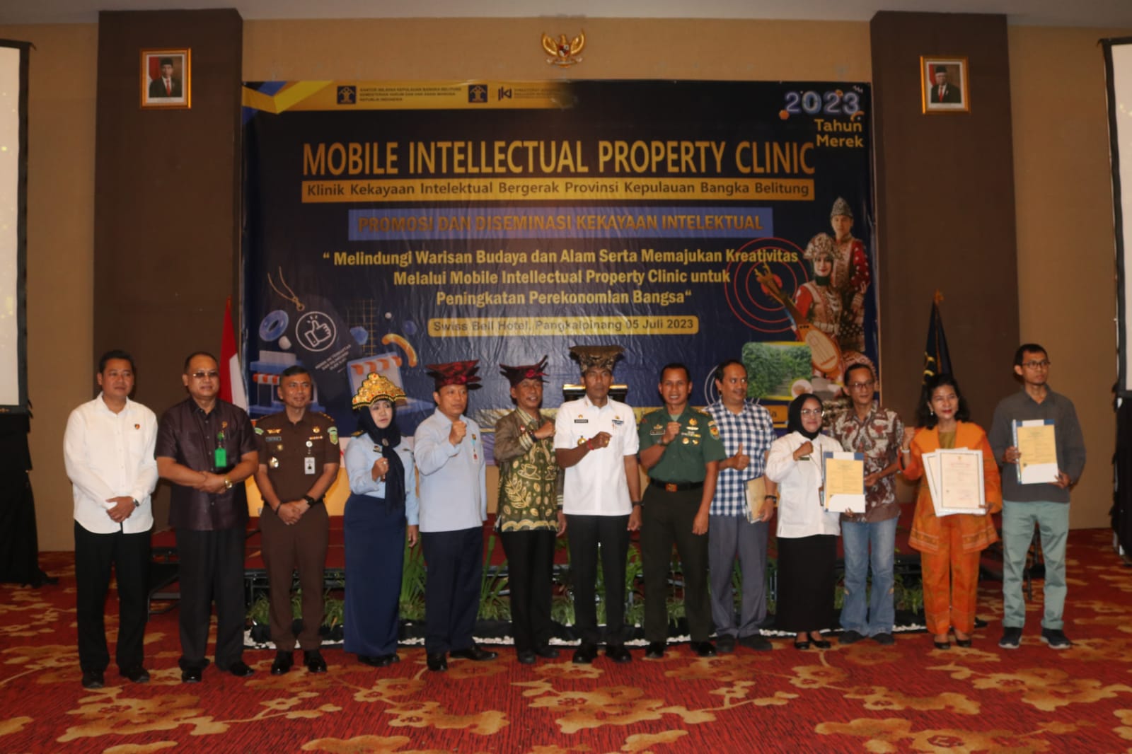 TerabasNews, Pangkalpinang, Kepala Seksi Logistik (Kasilog) Kasrem 045/Garuda Jaya Kolonel Inf Muh Musafag mewakili Danrem 045/Gaya, menghadiri pembukaan Mobile Intelektual Property Clinic (MIC) Tahun 2023 bertempat Swiss Bell Hotel Pangkalpinang, Rabu 05/07/2023.