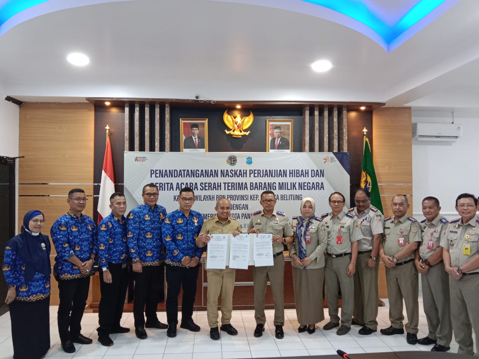 TerabasNews, PANGKALPINANG – Wali Kota Pangkalpinang, Dr. H. Maulan Aklil atau yang akrab disapa Molen lakukan penandatanganan Naskah Perjanjian Hibah dan Berita Acara Serah Terima Barang Milik Negara di Kantor Wilayah Badan Pertanahan Nasional (BPN) Provinsi Kepulauan Bangka Belitung, Senin (17/7/2023).