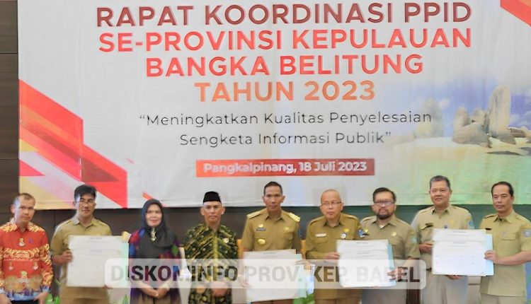 TerabasNews, PANGKALPINANG – Penjabat (Pj) Gubernur Kepulauan Bangka Belitung (Babel) Suganda Pandapotan Pasaribu membuka Rapat Koordinasi PPID Se-Provinsi Kepulauan Bangka Belitung Tahun 2023, yang mengangkat tema “Meningkatkan Kualitas Penyelesaian Sengketa Informasi Publik”, bertempat di Soll Marina Hotel Pangkalpinang, Selasa (18/07/2023).