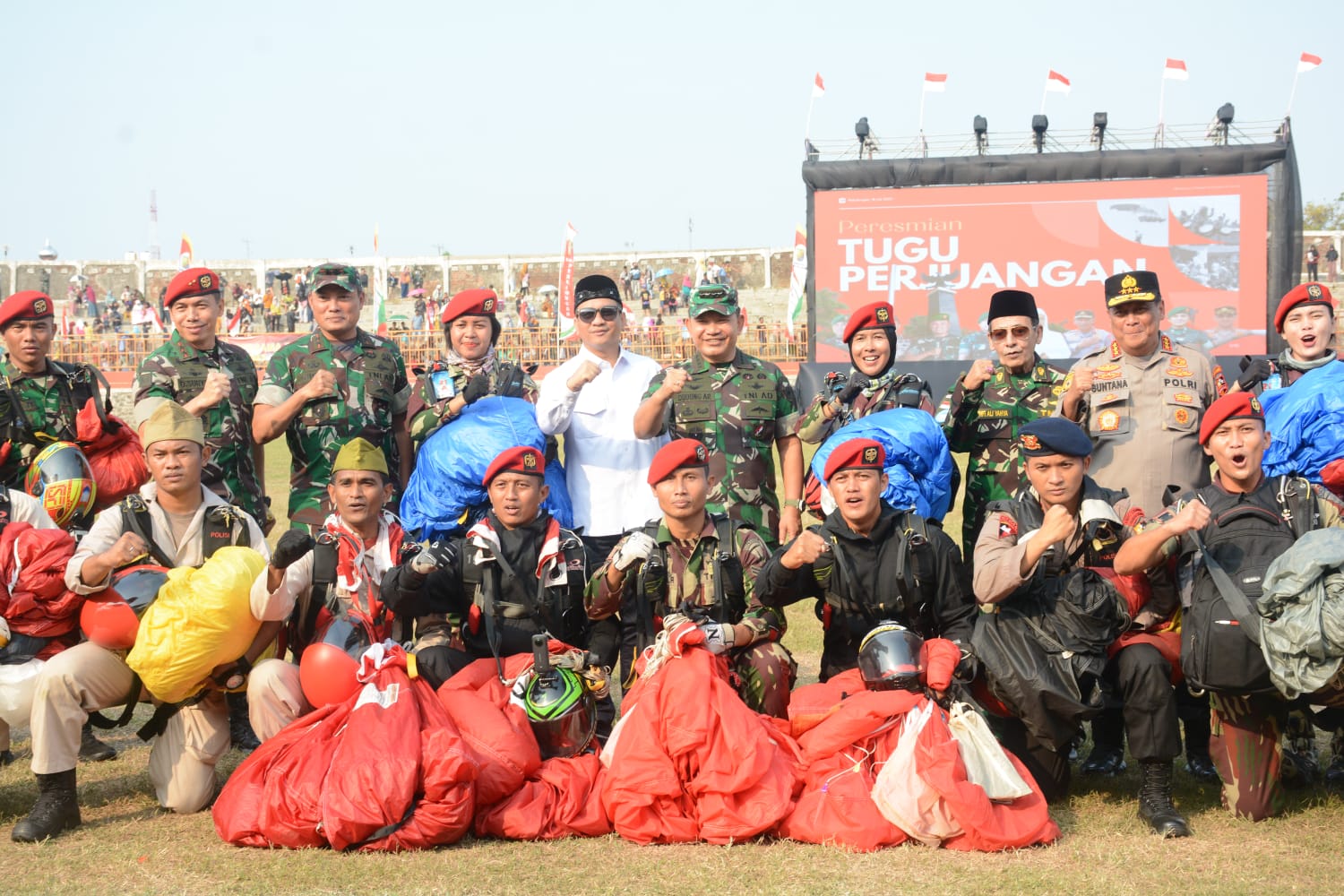 “Peresmian Tugu Perjuangan Pekalongan diwarnai dengan berbagai atraksi menarik, termasuk atraksi free fall atau terjun payung oleh 18 anggota dari Kopassus dan Polri. Selain itu juga dipertunjukkan Atraksi drumband dari Yonif R 400/Banteng Raider, marching band dari SMK Nusantara SUPM Batang dan SMK Al Fusha Kedungwuni Kabupaten Pekalongan, dan Ponpes Walindo. Atraksi lainya adalah Kirab merah putih oleh TNI-Polri, pelajar, santri, mahasiswa, FKPPI, ormas, dan berbagai elemen masyarakat menambah semaraknya peristiwa bersejarah ini, pungkasnya”.