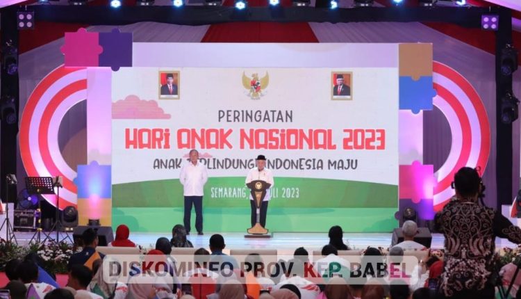 TerabasNews, SEMARANG – Penjabat (Pj) Gubernur Kepulauan Bangka Belitung (Babel), Suganda Pandapotan Pasaribu, bersama Penjabat Ketua Tim Penggerak Pemberdayaan Kesejahteraan Keluarga (PKK) sekaligus Bunda Pendidikan Anak Usia Dini (PAUD) Babel, Maya Suganda Pasaribu menghadiri kegiatan Puncak Acara Peringatan Hari Anak Nasional (HAN) ke-39 tahun 2023, yang dipusatkan di Lapangan Pancasila Simpang Lima, Kota Semarang, Jawa Tengah, Minggu (23/7/23).