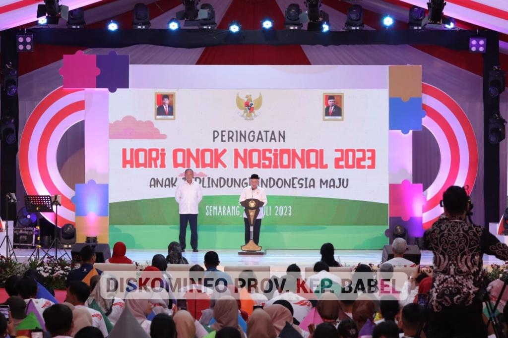 TerabasNews, SEMARANG – Penjabat (Pj) Gubernur Kepulauan Bangka Belitung (Babel), Suganda Pandapotan Pasaribu, bersama Penjabat Ketua Tim Penggerak Pemberdayaan Kesejahteraan Keluarga (PKK) sekaligus Bunda Pendidikan Anak Usia Dini (PAUD) Babel, Maya Suganda Pasaribu menghadiri kegiatan Puncak Acara Peringatan Hari Anak Nasional (HAN) ke-39 tahun 2023, yang dipusatkan di Lapangan Pancasila Simpang Lima, Kota Semarang, Jawa Tengah, Minggu (23/7/23).