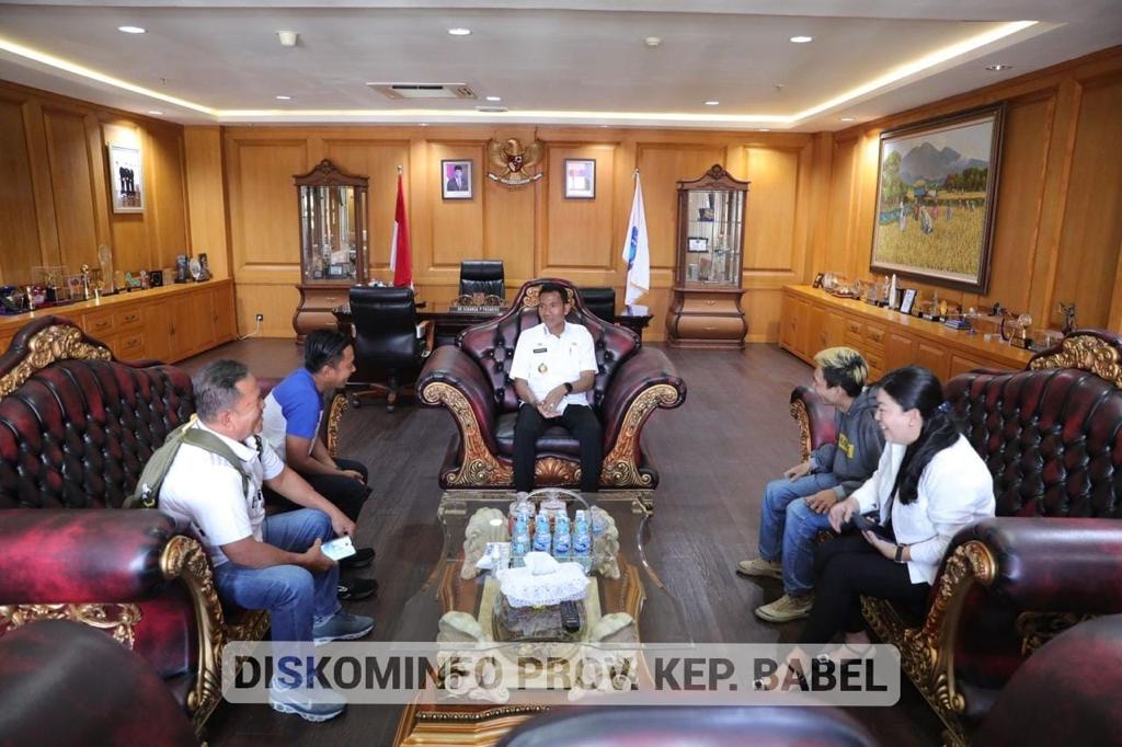 TerabasNews, PANGKALPINANG – Ketua Pelatih Sekolah Sepak Bola (SSB) Tunas Depati Amir, Idham Fram Khailano bersama Sekretaris Seksi Wartawan Olahraga (SIWO) Persatuan Wartawan Indonesia (PWI)Kepulauan Bangka Belitung (Kep. Babel), Robi Yansah temui Penjabat (Pj) Gubernur Kep. Babel Suganda Pandapotan Pasaribu, pada Rabu (26/7/23) di Kantor Gubernur Kep. Babel. Yang mana pihaknya bertandang dengan tujuan untuk menjalin silaturahmi serta meminta dukungan langsung dari orang nomor satu di Bumi Serumpun Sebalai tersebut.