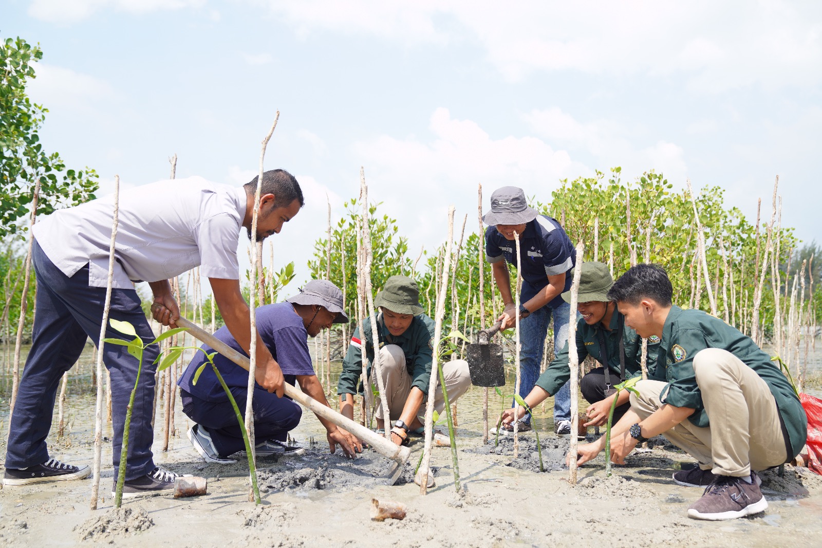 Penanaman 5000 bibit mangrove jenis Rhizofora melibatkan seluruh lapisan masyarakat Desa Baskara Bakti, stakeholder dan karyawan PT Timah Tbk.