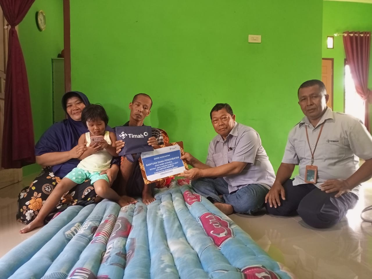 “Alhamdulillah, saat suami sakit, beban hidup terbantu dengan bantuan tetangga, keluarga, dan sekarang dibantu PT Timah. Terimakasih kepada PT Timah dan semua tetangga, keluarga dan semuanya atas bantuan buat suami dan keluarga kami,”ucapnya.