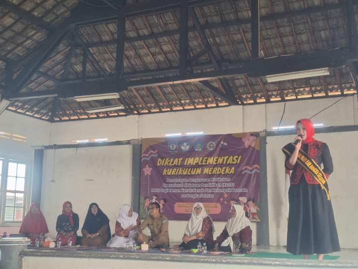 TerabasNews, Toboali – Bunda Pendidikan Anak Usia Dini (PAUD) Bangka Selatan, Hj. Elizia Riza Herdavid, S.E, hadiri dan membuka acara Diklat Implementasi Kurikulum Merdeka “Pemantapan Penyusunan Kurikulum Operasional di Satuan Pendidikan (KOSP) PAUD untuk Satuan Pendidikan PAUD (TK dan KB)” di Gedung Nasional Toboali pada Selasa, 1 Agustus 2023.