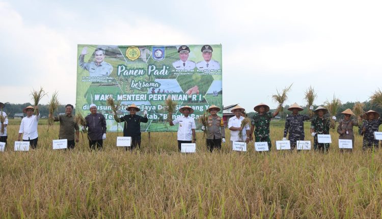 Danrem 045/Garuda Jaya Panen Padi Bersama Wakil Menteri Pertanian RI di Bangka Barat