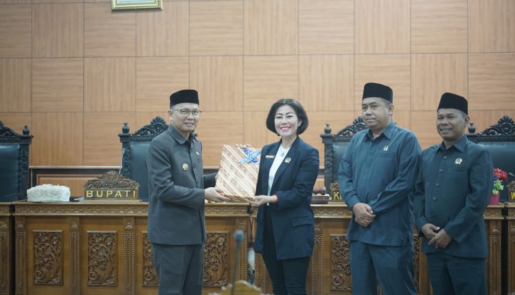 Selanjutnya, rancangan laporan perubahan RKUA dan PPAS Kabupaten Bangka Tengah Tahun Anggaran 2023 ini diserahkan langsung oleh Bupati Bateng, Algafry Rahman dan diterima oleh Ketua DPRD Bateng, Me Hoa.* Sumber: Diskominfosta Bangka Tengah