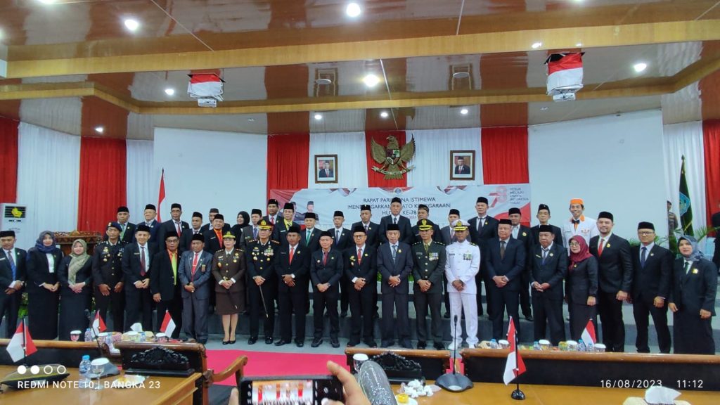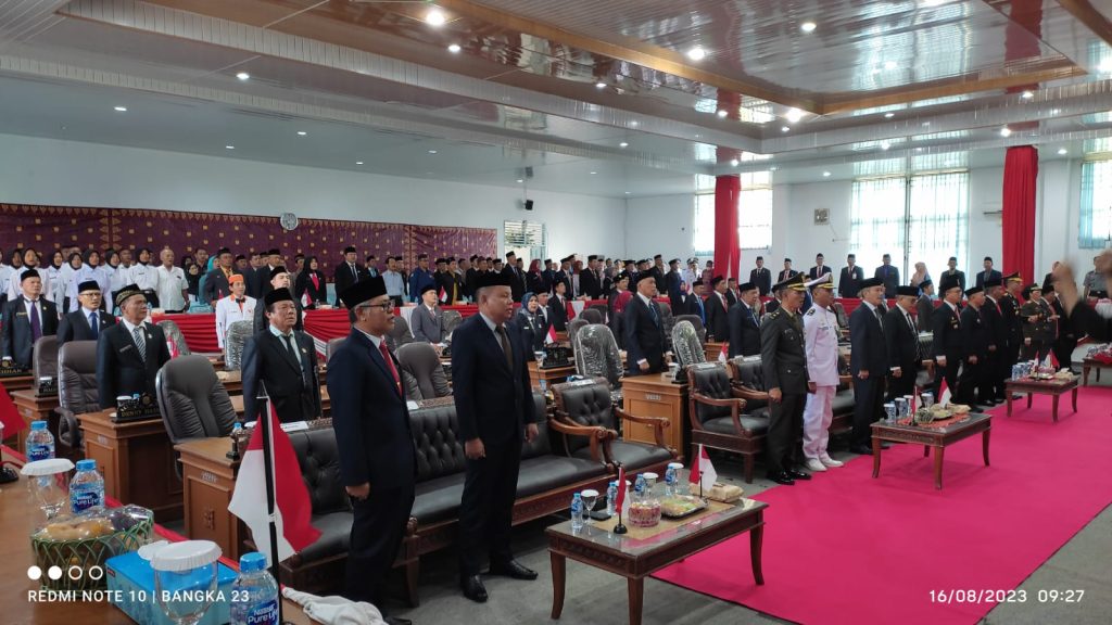 TerabasNews, SUNGAILIAT – Dalam rangka memperingati Hari Ulang Tahun (HUT) ke-78 Kemerdekaan Republik Indonesia (RI) tahun 2023, Dewan Perwakilan Rakyat Daerah (DPRD) Kabupaten Bangka menggelar rapat paripurna istimewa mendengarkan pidato Kenegaraan Presiden RI berlangsung di ruang mahligai DPRD, Rabu (16/08).
