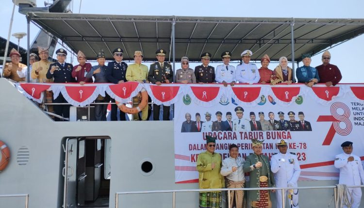 HUT ke-78 RI, Danrem 045/Garuda Jaya Bersama Forkopimda Upacara Tabur Bunga di Atas KRI Kalmanau
